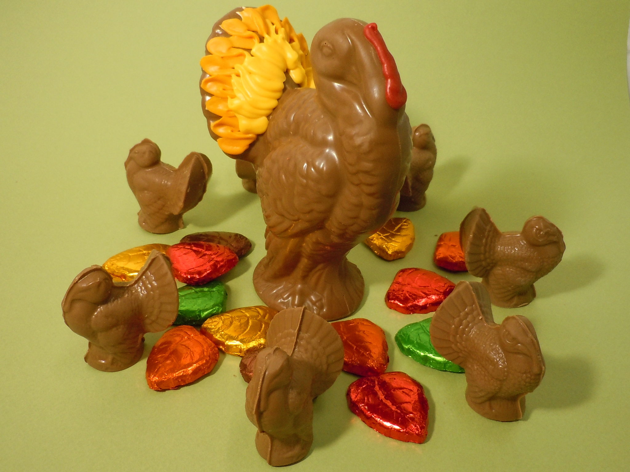 Create a beautiful Centerpiece with our large, hand decorated, Chocolate Turkey and delight your Family and Guests with individually packaged Place Setting Turkeys.